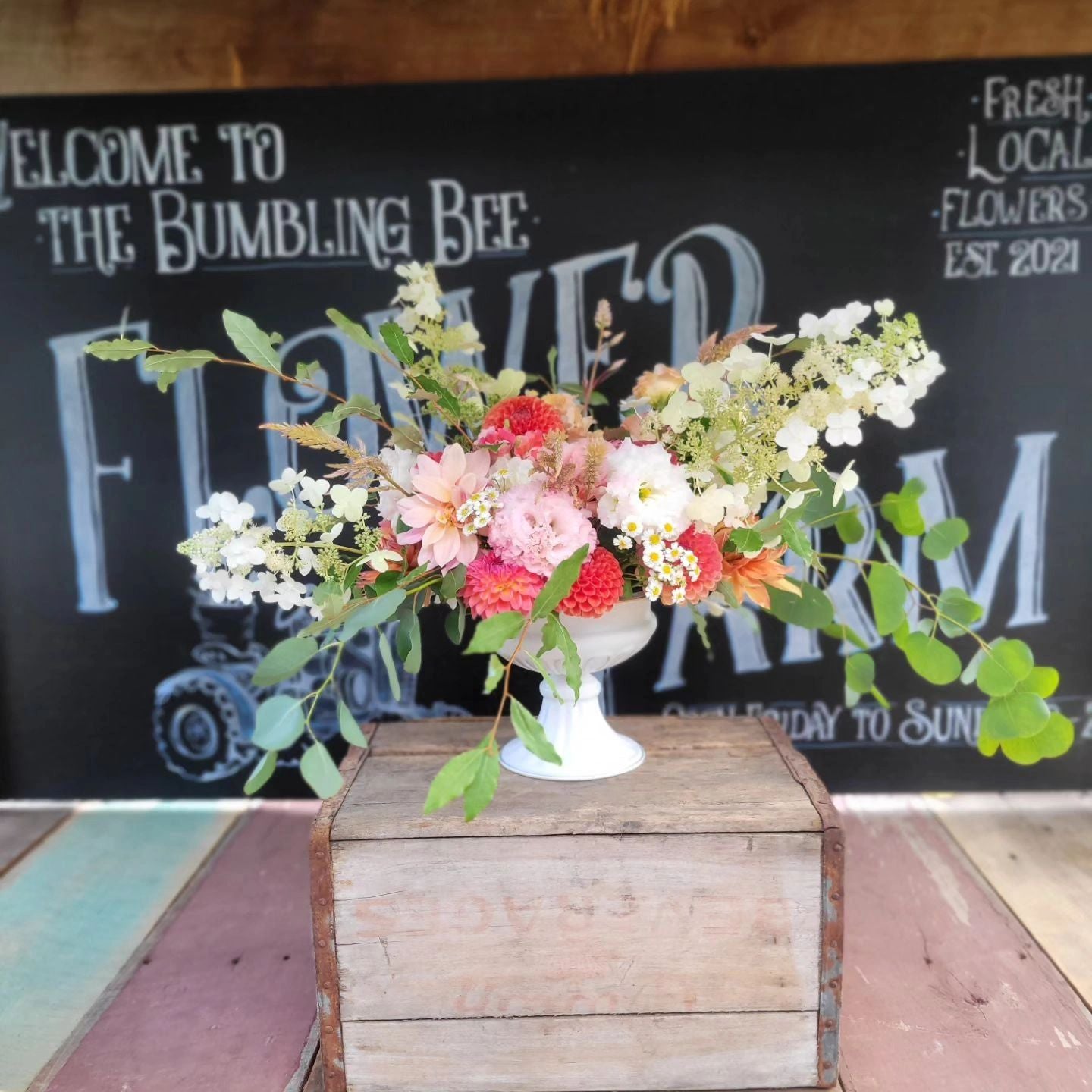The Bumbling Bee Flower Farm is a small, local flower farm offering seasonal, farm-grown flowers with a natural, garden-inspired style. We specialize in custom bouquets, funeral and sympathy arrangements, and floral designs that feel thoughtful, personal, and locally rooted. Our farm shop is open Friday–Sunday during the growing season. During the off-season, we are closed to walk-in shopping but continue to accept custom orders, funeral arrangements, and event inquiries by appointment. We are happy to help with custom requests.