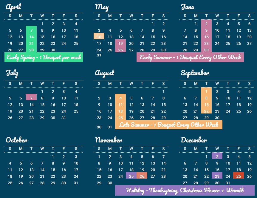 Summer is just beginning, and our fields are bursting with blooms! With our Early Summer Flower Subscription, you’ll receive one hand-picked bouquet every other week for four weeks, overflowing with farm-fresh favorites like peonies, ranunculus, lilies and more. Bring the vibrant colors, scents, and joy of early summer straight from our fields to your home.